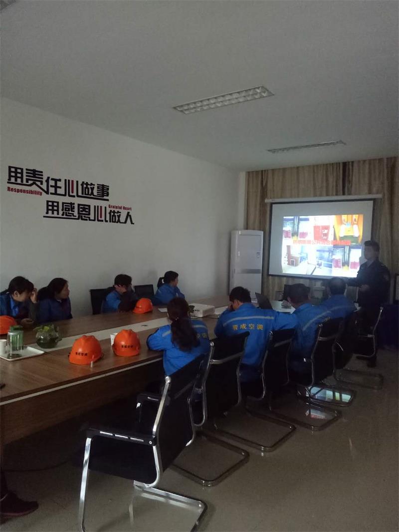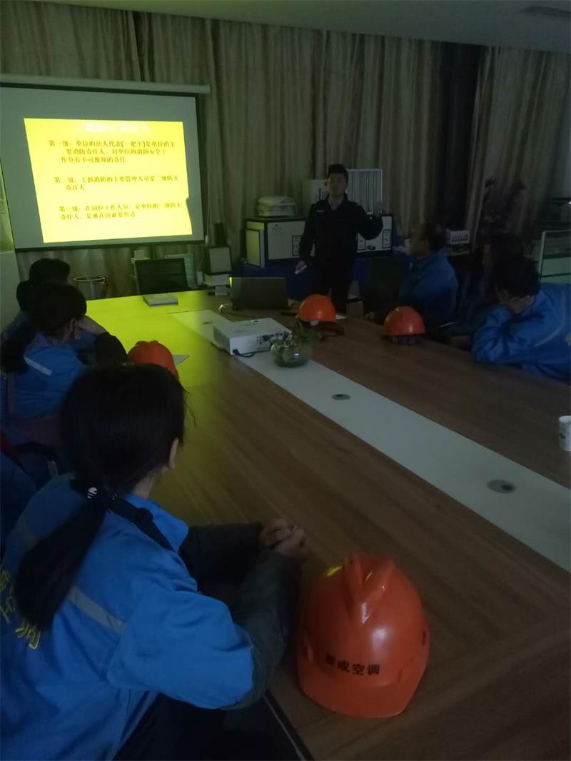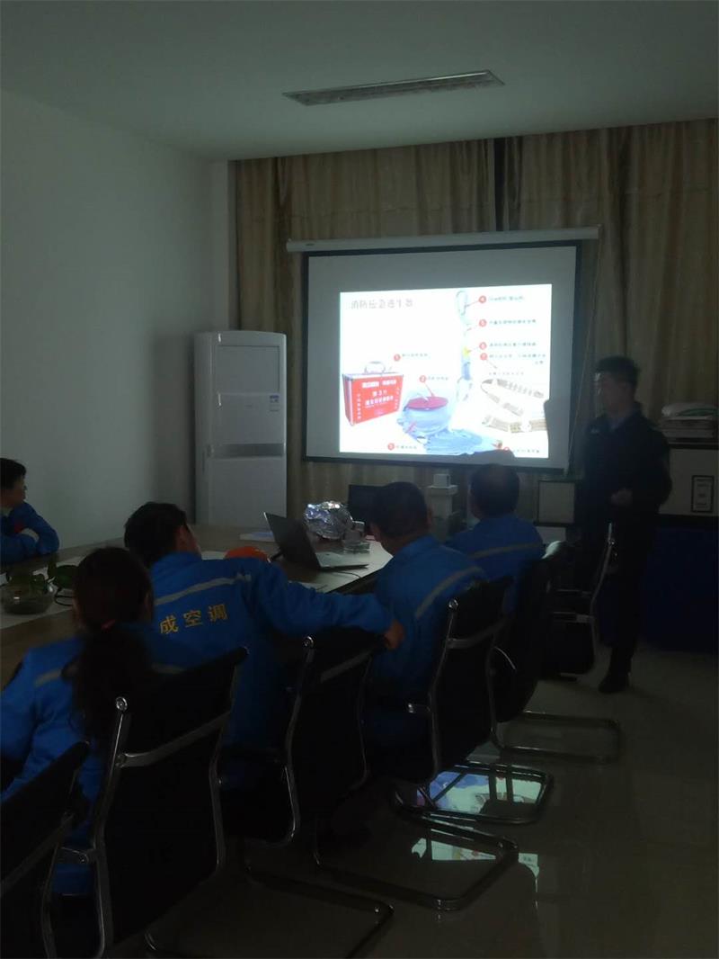 【警鐘長時鳴 安全記心上】為進一步加強企業的生產安全工作,提高全體員工的安全防范意識、防災控災能力。本月,江蘇晉成空調工程有限公司工業空調化纖工業空調、化纖工業制冷、紡織工業空調、無塵車間制冷通風管道冷卻塔冷凍機開展了消防知識培訓活動,就消防安全知識進行了學習。